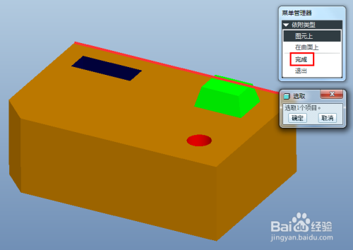 下一步,我们可以选择边或者曲面,这时辰鼠标左键接近鸿沟,就会蓝色加亮显示。鼠标左键单击选择边,之后边会酿成红色显示,点击菜单上的完当作。然后鼠标光标会显示当作一个箭头添加注释的符号,鼠标左键点击模子显示区打算放置注释的位置放下注释文本。