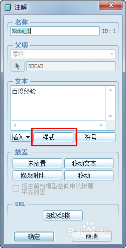 文字默认有点小,我们可以点窜一下文本的属性。注解对话框中,点击“样式...”按钮,弹出文本样式对话框。