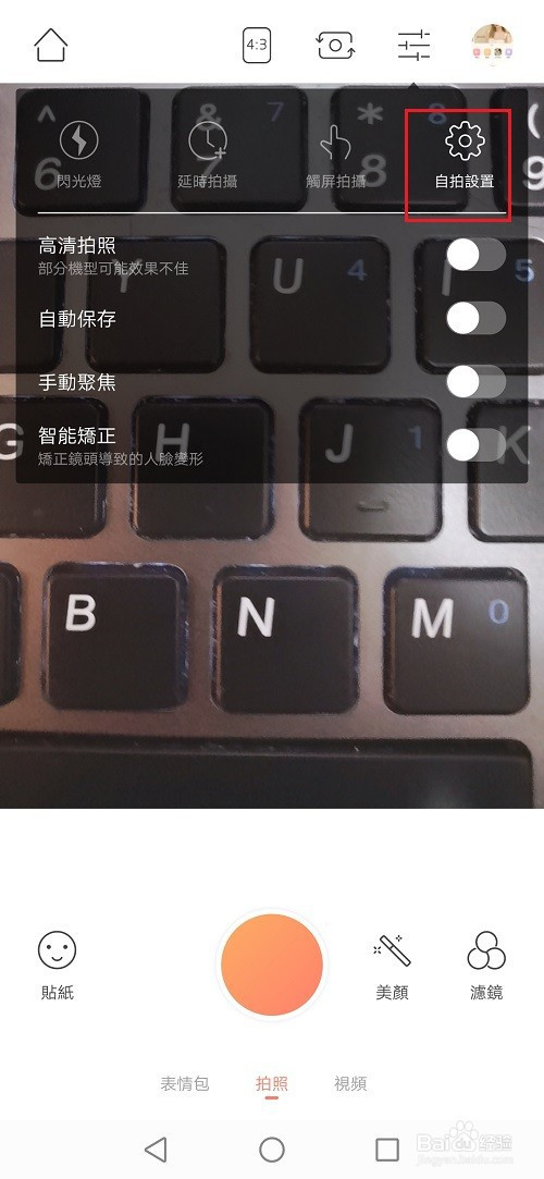 第三步进去之后,点击列表图标,然后点击自拍设置