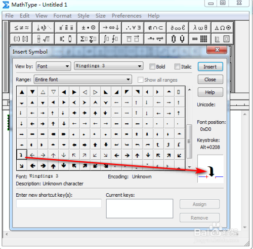 在弹出的对话框中,将“查看”设置为“字体”以及“Wing dings 3”,其他连结默认,具体如图所示: