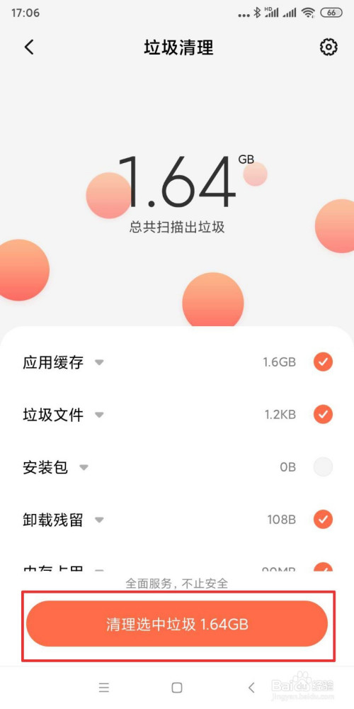 软件起头扫描垃圾,扫描完当作,点击清理选中垃圾。