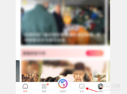 1.进入手机全汗青首页后,点击下方菜单栏中的社区。