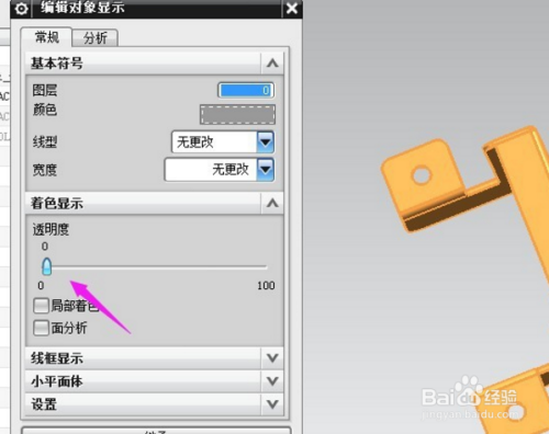 然后打开透明度节制条,调整部件的透明度。