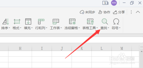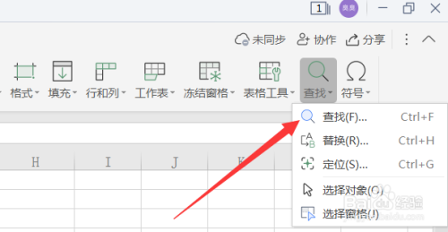 打开Excel表格,选择菜单栏的起头--查找选项卡。