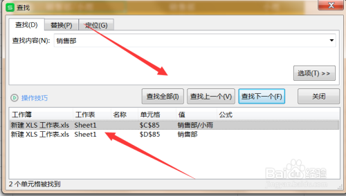 点击查找全数,即可呈现Excel表格中您要查找的全数内容。