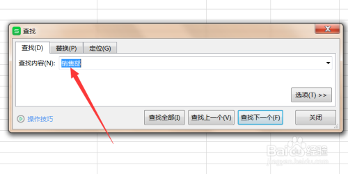 在查找选项弹出的对话框中输入要查找的内容。