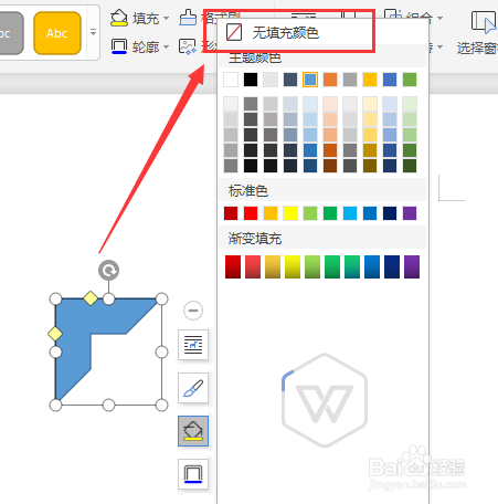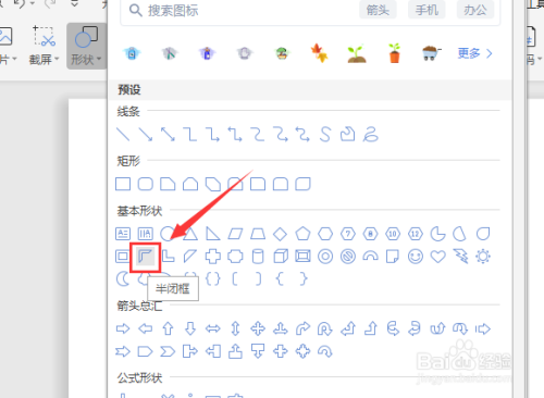 - 5点击选中文档中的半闭框,点击右边的【外形填充】图标