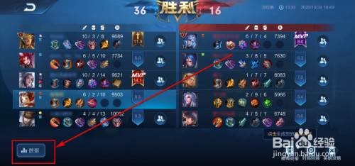 - 也可以在一局对局竣事时,点击数据,选择英雄,查看表示分哦