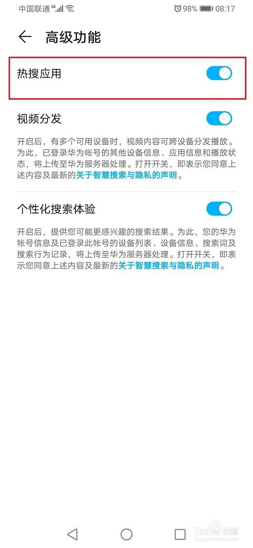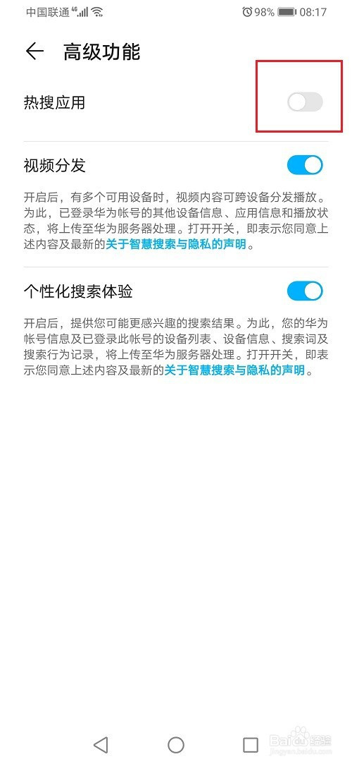 第五步点击之后,就封闭华为手机热搜应用了,按照需要利用