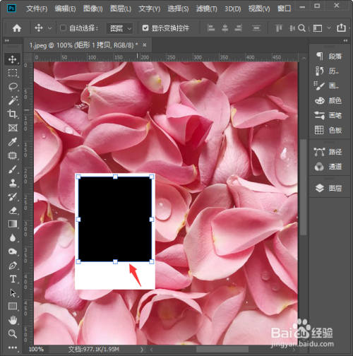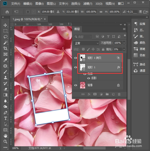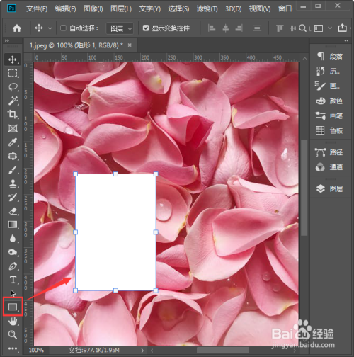 我们在图片上面,用【矩形东西】画出一个白色长方形外形,如图所示。