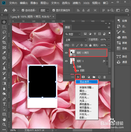 接下来,我们选中黑色的外形,点击【FX】找到【夹杂选项】,如图所示。
