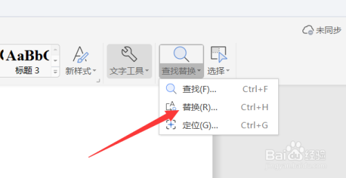 打开Word文档,点击起头选项卡,再选择查找与替代选项。
