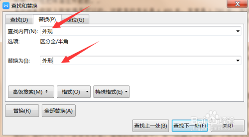 在查找与替代的下拉菜单里选择替代选项。