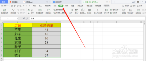 设置拒绝录入反复项,点击菜单栏的数据选项卡。