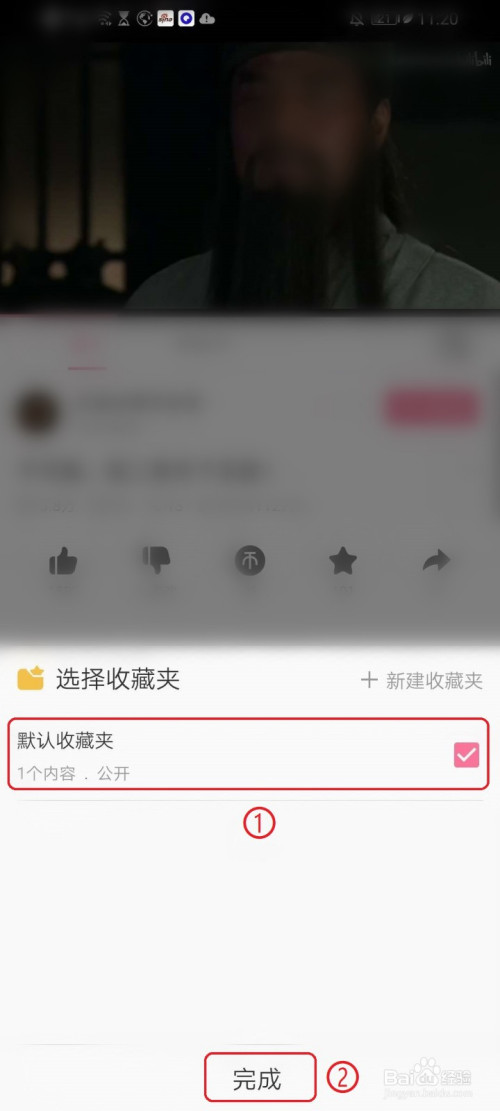 选择保藏的位置,例如勾选【默认收藏夹】,然后点击【完当作】。