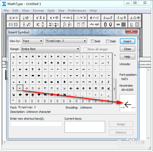 在弹出的对话框中,将“查看”设置为“字体”以及“Wing dings 3”,其他连结默认,具体如图所示: