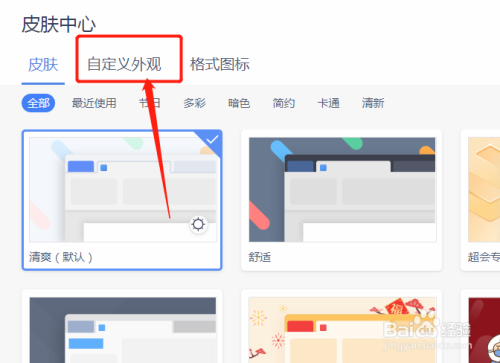 进入到皮肤中间,切换到自界说外不雅。