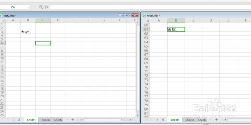 点击之后,屏幕就垂直平铺显示了两个excel表格。