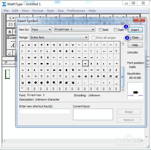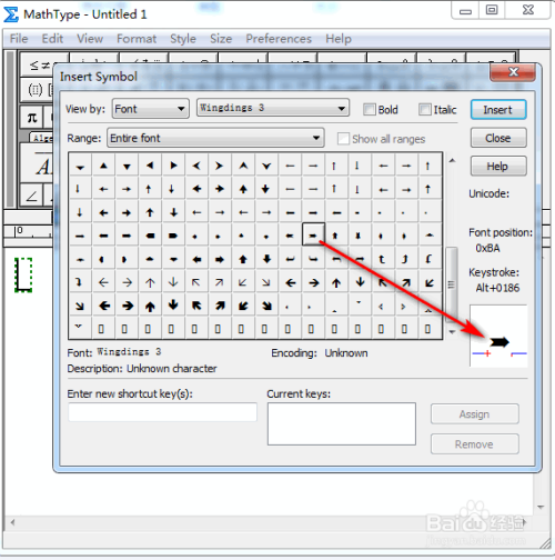 在弹出的对话框中,将“查看”设置为“字体”以及“Wing dings 3”,其他连结默认,具体如图所示: