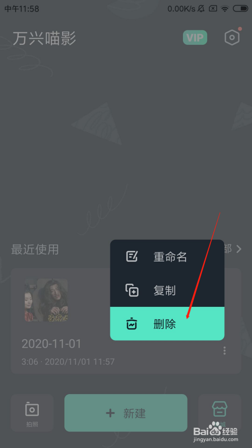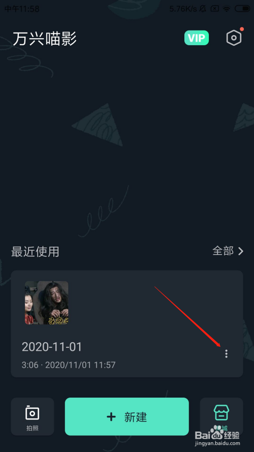 打开万兴喵影之后,找到要删除的项目,然后点击该项目右下方的三个小圆点。