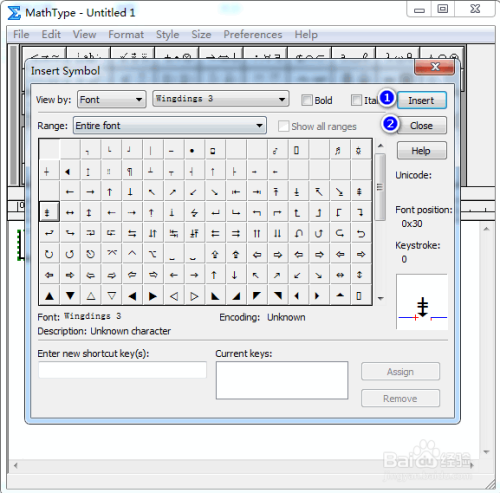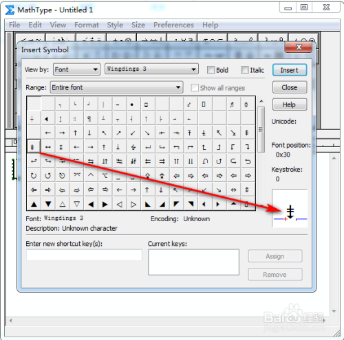 在弹出的对话框中,将“查看”设置为“字体”以及“Wing dings 3”,其他连结默认,具体如图所示:
