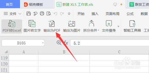 在特色按钮选项卡下选择输出为PDF选项。