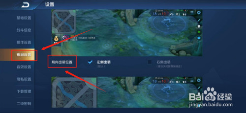 在结构设置里,找到“局内出装位置”选项。