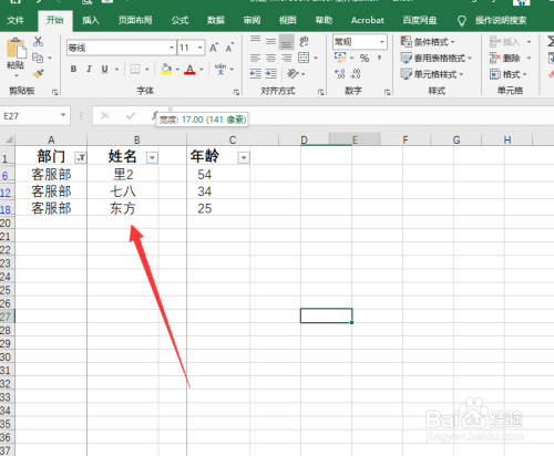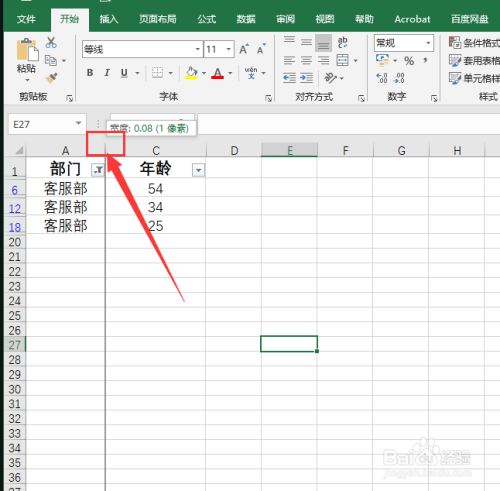 将鼠标光标移动到A列和C列中心的线上,待光标酿成双竖线双箭头标记时,标的目的右拉动即可拖出B列;