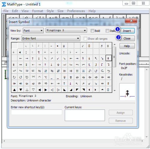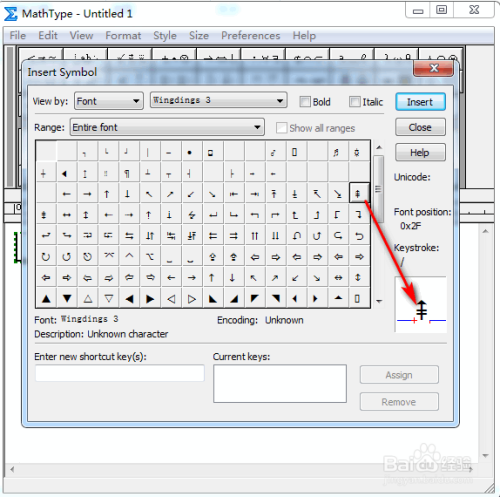 在弹出的对话框中,将“查看”设置为“字体”以及“Wing dings 3”,其他连结默认,具体如图所示: