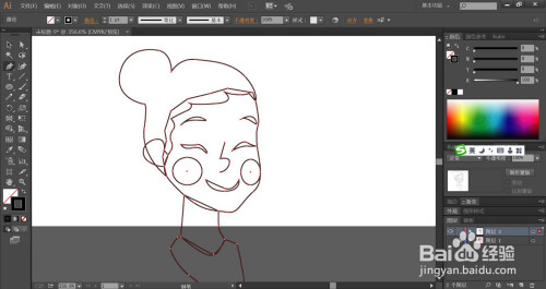 利用钢笔勾勒出教员的头发与面部的笑脸细节路径,重点画出眉毛与眼睛的轮廓。