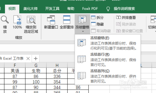 我们都知道,冻结窗口一般是选择视图东西卡下面的冻结窗口按钮。可是我们点击之后发现,这里有冻结首行的,可是没有冻结最后一行的选项