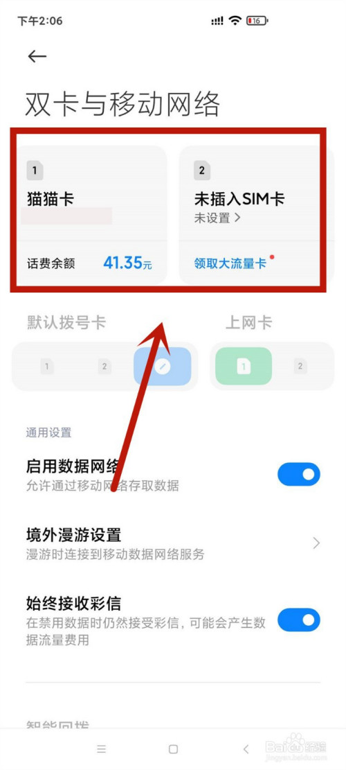 双卡双待的手机,我们可以进行切卡拨打德律风。
