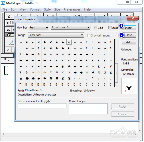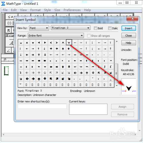 在弹出的对话框中,将“查看”设置为“字体”以及“Wing dings 3”,其他连结默认,具体如图所示: