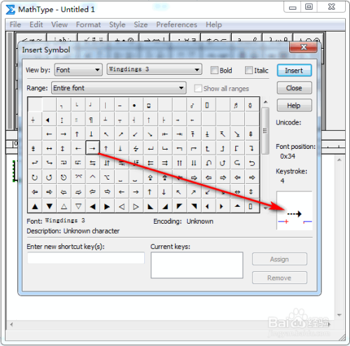 在弹出的对话框中,将“查看”设置为“字体”以及“Wing dings 3”,其他连结默认,具体如图所示: