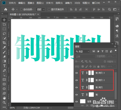 我们在图层里,别离把后面的三个文字点窜当作本身想要的字,如图所示。