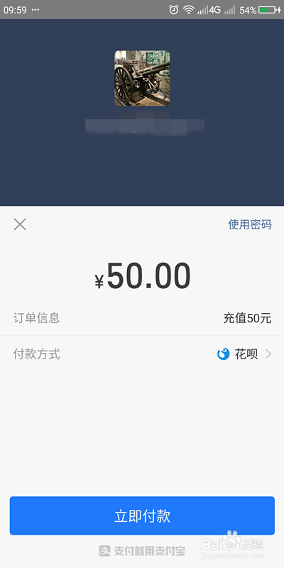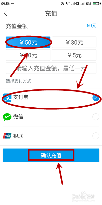 选择充值金额(输入也可)、支付渠道(支付宝为例)后,点击【确认】