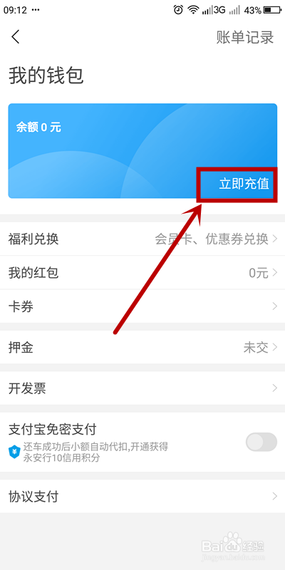 进入【我的钱包】页面后,点击【当即充值】选项