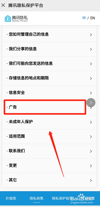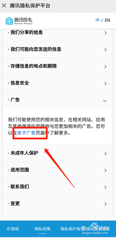 点击隐私政策,如图所示