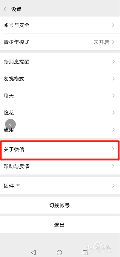 点击关于微信,如图所示