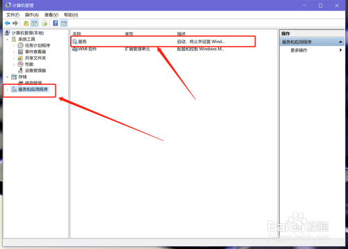 在计较机办理页面,选择【办事和应用程序】,右侧选择办事,鼠标双击进入下一步。