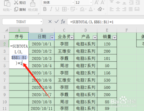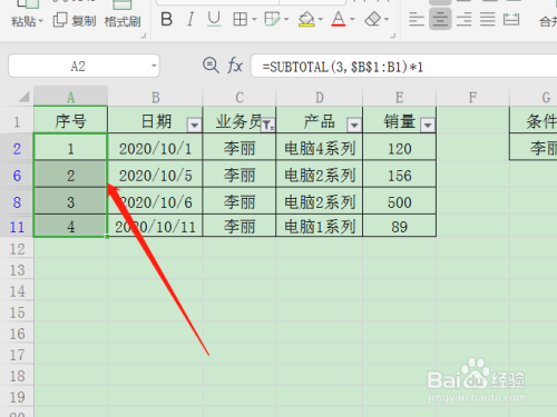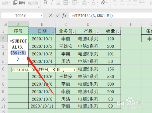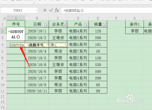 运用SUBTOTAL函数,函数的第一个参数:函数序号输入3。