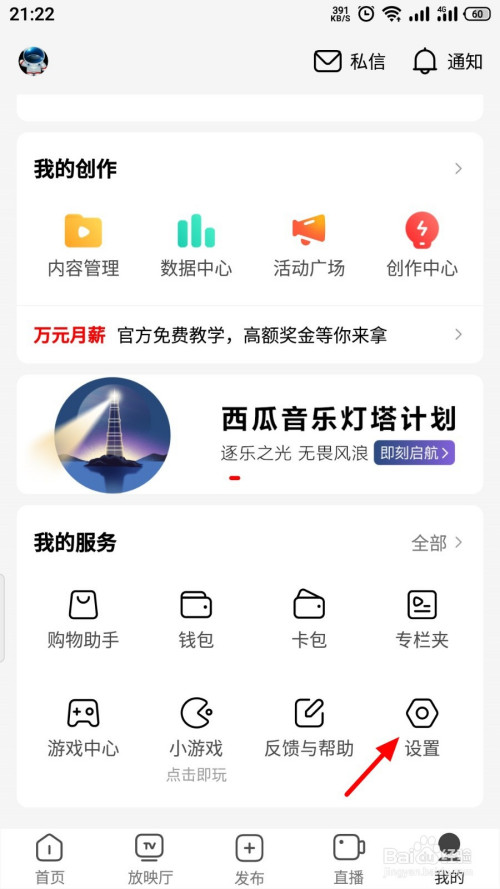 【1】打开 西瓜视频,点击 我的>设置>账号办理;