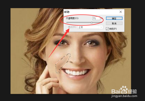 快捷键CTRL+D打消选区,可以看到法令纹浅了良多。