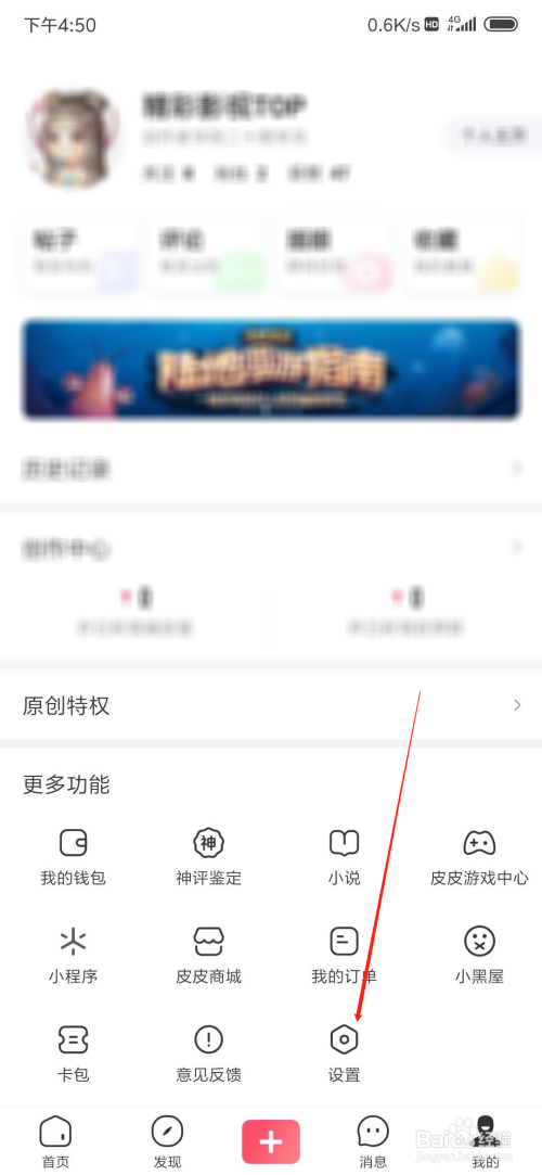 在小我中间页面中,点击下方的设置选项。