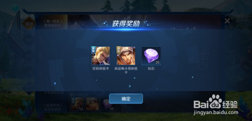 领取之后,我们回获得【狂铁体验卡】1张、【命运角斗场体验卡(狂铁皮肤)】1张和20个钻石。