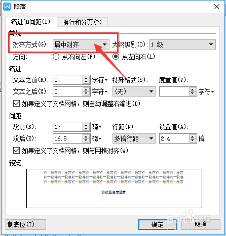 进入到了段落界面中,点击 对齐体例 选项