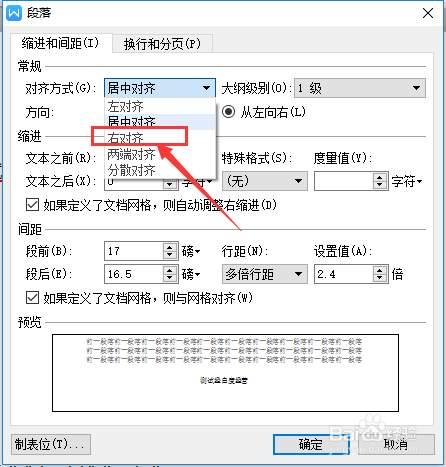 点肥沫击了爱销对齐体例选项之后,弹出了下拉菜单选中为 右对齐