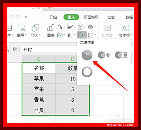 如图,在弹出的离光菜单中,我们需要选择第一个饼图选项。