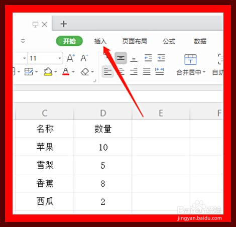 进入excel表格之后,我们点击上方的插入选项卡侨痕。