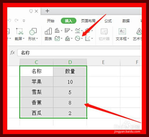 如图,这时选摘要建造当作饼图的数据表,然后我们点击上方的圆形按诸联久钮。